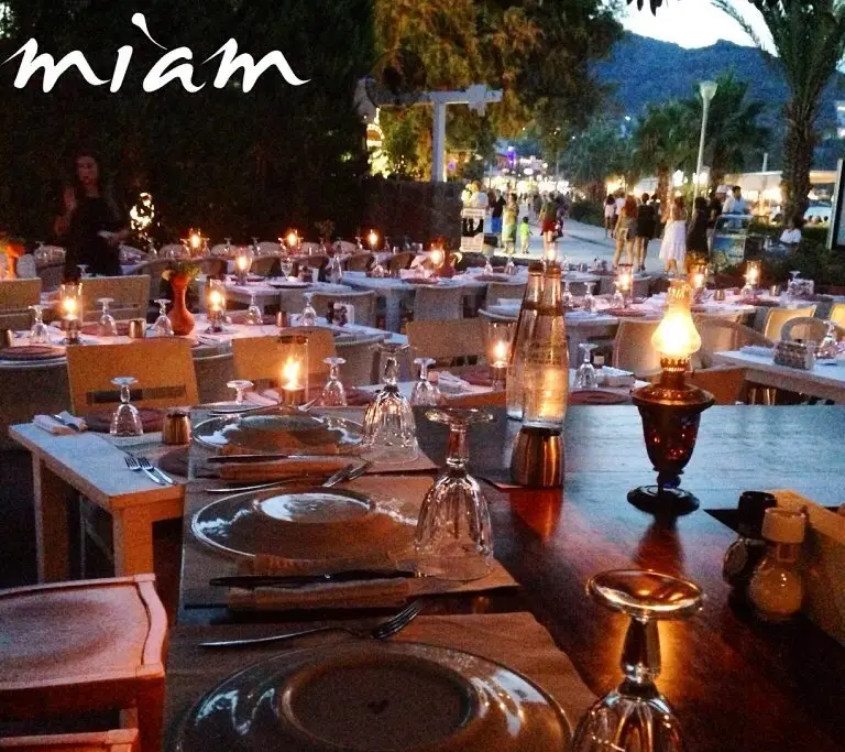 Miam Restaurant Göltürkbükü, Bodrum'un çarpıcı manzarasına sahip, deniz kıyısında konumlu bir cennettir. Özel günlerinizi, değerli anlarınızı sevdiklerinizle birlikte kutlamak için eşsiz bir mekandır. Türk ve Akdeniz mutfağının en seçkin lezzetlerini sunan menümüz, her damak tadına uygun alternatiflerle bezelidir. Denizin huzur verici sesi eşliğinde, unutulmaz akşam yemekleri için sizleri bekliyoruz. Saat 09.00'dan başlayıp 03.00'e kadar süren servisimizle, günün her saati kaliteli hizmet anlayışıyla yanınızdayız. Nikah sonrası yemekleri, evlilik teklifleri veya doğum günleri gibi özel anlarınızda yanınızda olmak için buradayız. Profesyonel ekibimizle birlikte, hayalinizdeki organizasyonu gerçekleştirmek için özel menülerimizden seçiminizi yapın ve organizasyon sorumlumuzla iletişime geçin; size özel en güzel masayı rezerve edelim.