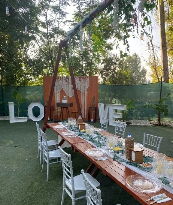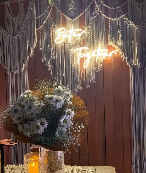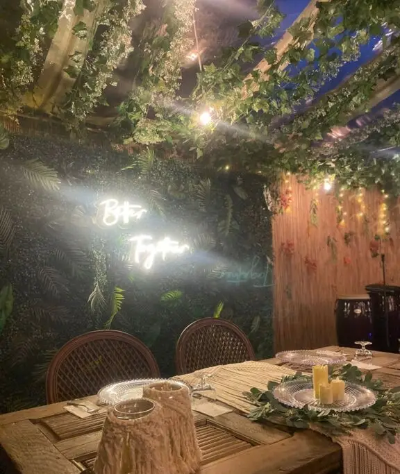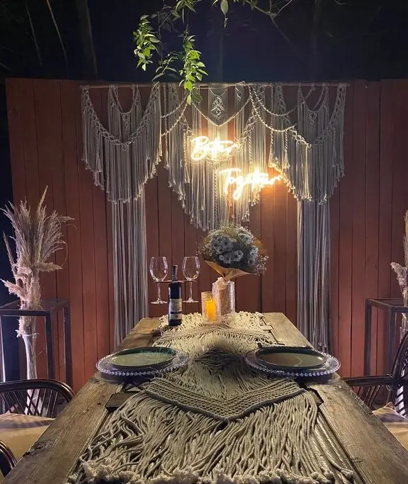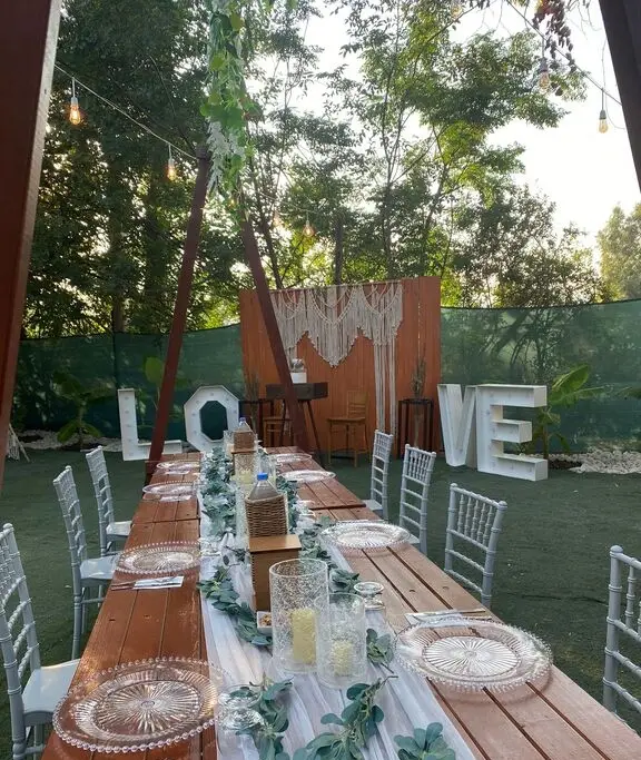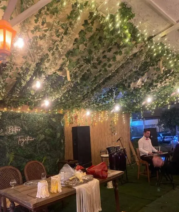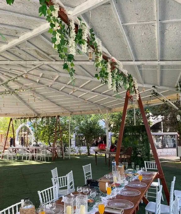 Doğal malzeme kullanımı ve vintage konseptler başta olmak üzere, sizin zevk ve bütçenize uygun dekorasyon seçenekleri sunuyoruz. Uzun ahşap masalar, yeşil yaprak detayları, cam süslemeler ve makrome aksesuarları favori dekorasyon öğelerimizdendir.