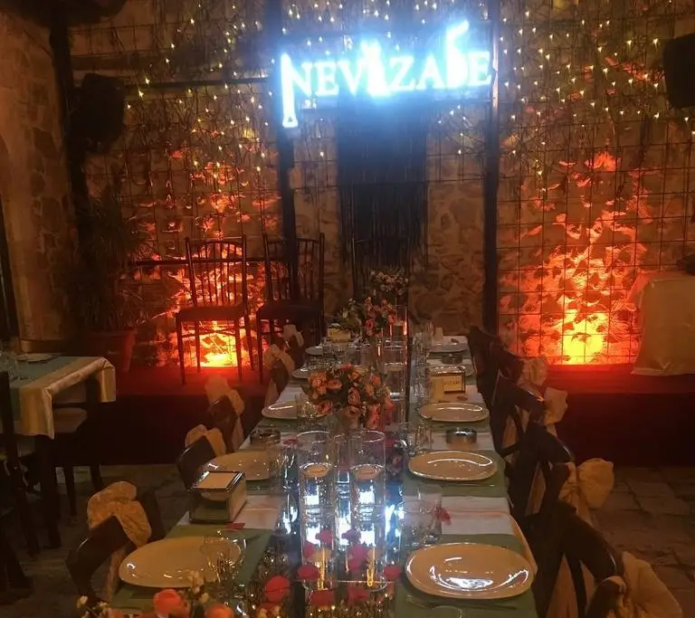 Nevizade Antakya, evlilik öncesi etkinlikleriniz için zarif bir arka plan sunar. Bekarlığa veda partilerinizde, siz ve dostlarınız için unutulmaz anlar yaratmak amacıyla detaylara gösterdiğimiz özenle fark yaratıyoruz. Her bir detayı sizin tercihlerinize göre şekillendiren ekibimiz, planlama sürecinin her aşamasında yanınızda. Dikdörtgen masalar ve konseptinize uygun süslemelerle hazırladığımız oturma düzeni, şıklığı ve estetiği ön plana çıkarır.Antakya'nın eşsiz lezzetlerinden oluşan menülerimizle davetlilerinize unutulmaz bir ziyafet sunuyoruz. Kendi özel tariflerimizle hazırladığımız lezzet seçenekleri ve menü tadımları ile damak zevkinize uygun bir menü oluşturmanızı sağlıyoruz. Mekanımız, özel aydınlatmalar ve zarif dekorasyonlarla gecenin şıklığını tamamlarken, müzisyenlerimizin başlattığı eğlence ile bekarlığa veda partinizi unutulmaz kılıyor. Özel günleriniz için her detayla özenle hazırlanmış bir ortamda eşsiz bir deneyim vadediyoruz.