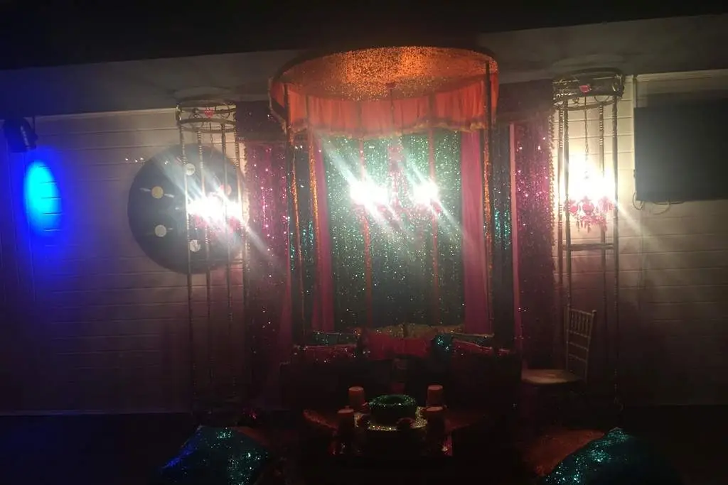 Biz, davetli sayınıza uygun şekilde hazırlanan yuvarlak masalarımızı, kırmızı masa örtüleri ve geleneksel motiflerle süslenmiş aksesuarlarla bezerken, sizin konseptinize uygun renklerde kına köşesi dekorasyonu yapıyoruz. Osmanlı sultanlarını anımsatan kına tahtı, ışıltılı kumaşlar ve şık dekorasyonlarla tamamlanan mekânımızda, unutulmaz bir gece geçireceksiniz.
