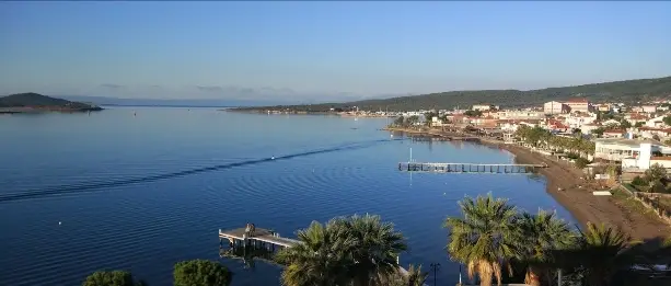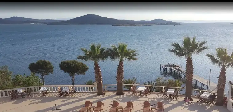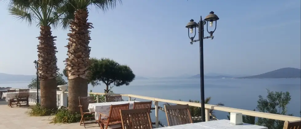 Cunda Adası'nda, Ayvalık otogarına 6 km, Körfez Havalimanı’na ise 45 km mesafededir.