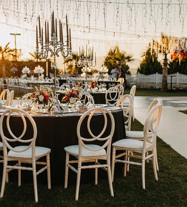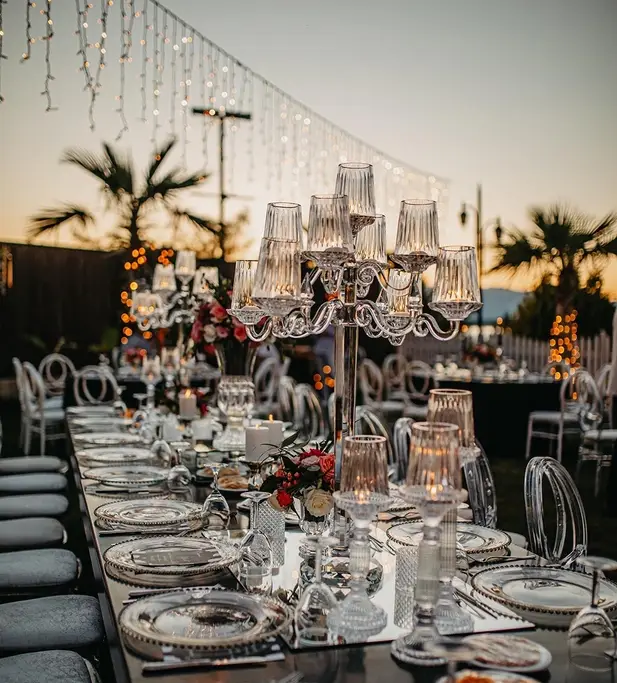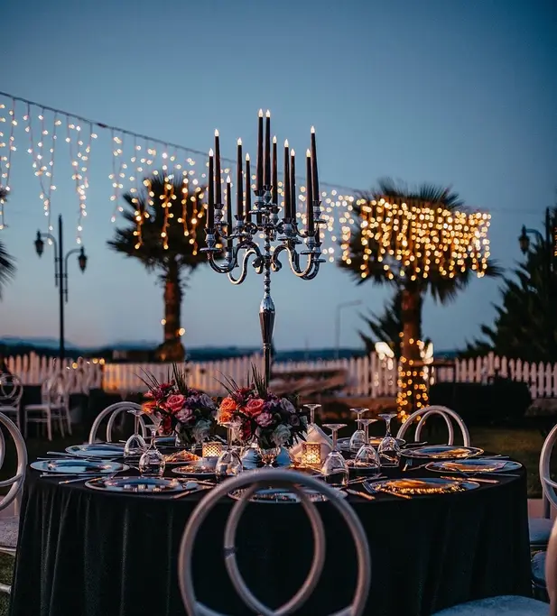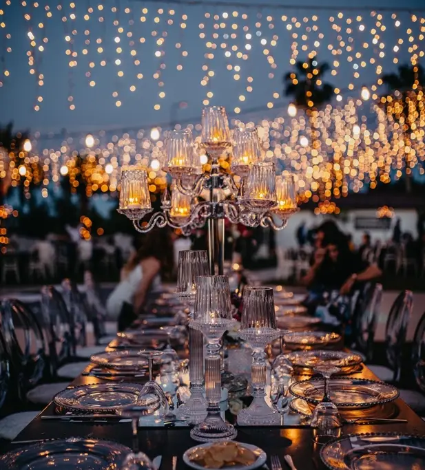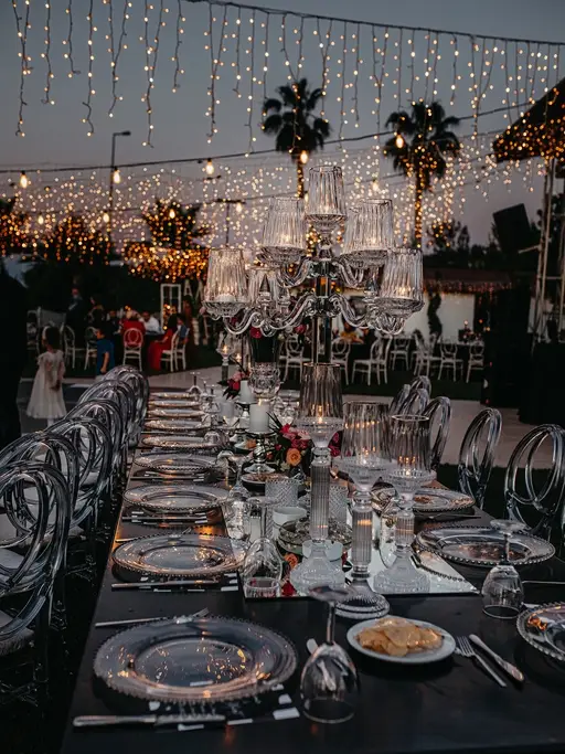 Wedding Panorama Park Teras'ta, rustik ve klasik tasarımların modern bir bakış açısıyla harmanlandığı özgün dekorasyon anlayışımız bulunmaktadır. Her detay düşünülerek hazırlanan bu özel ortamda, beyaz masalar, şeffaf ya da beyaz napolyon sırtlı sandalyeler ve romantik dokunuşlarla süslenmiş ahşap aksesuarlarla unutulmaz bir atmosfer yaratıyoruz.