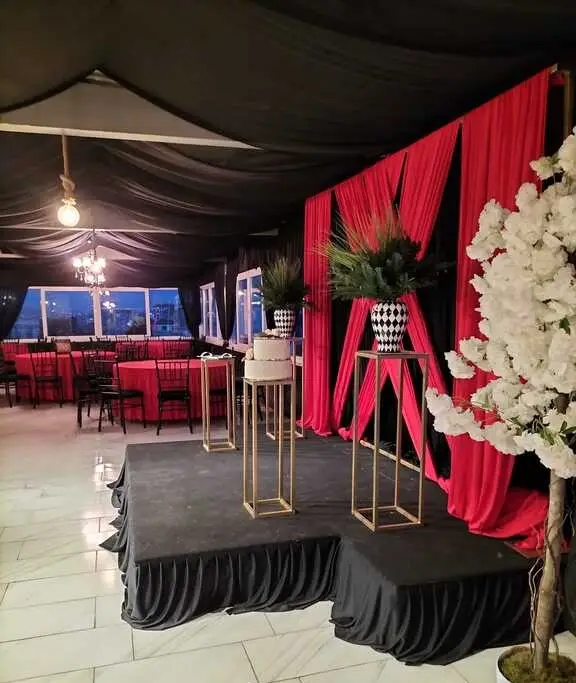 Mekanımızın dekorasyonunda modern çizgiler ön planda tutulmaktadır. Siyahın hakim olduğu dekorasyonumuz, çiftlerimizin isteğine bağlı olarak farklı renk temaları ile kişiselleştirilebilmektedir. Davet alanını aydınlatan sarkıt lambalar ve tavanı süsleyen kumaşlar ile mekânımız, modern ve şık atmosferini korumaktadır.