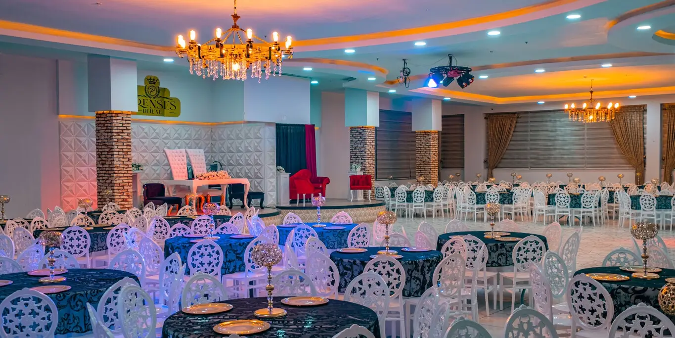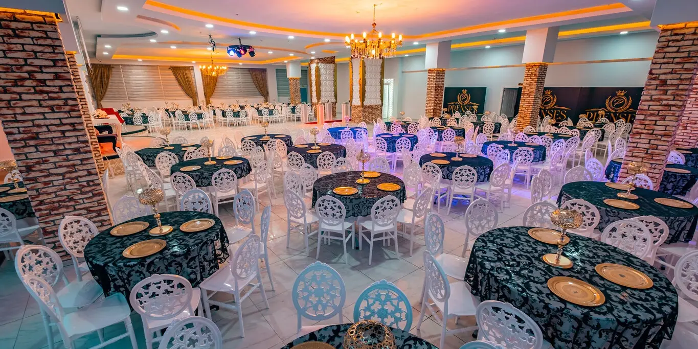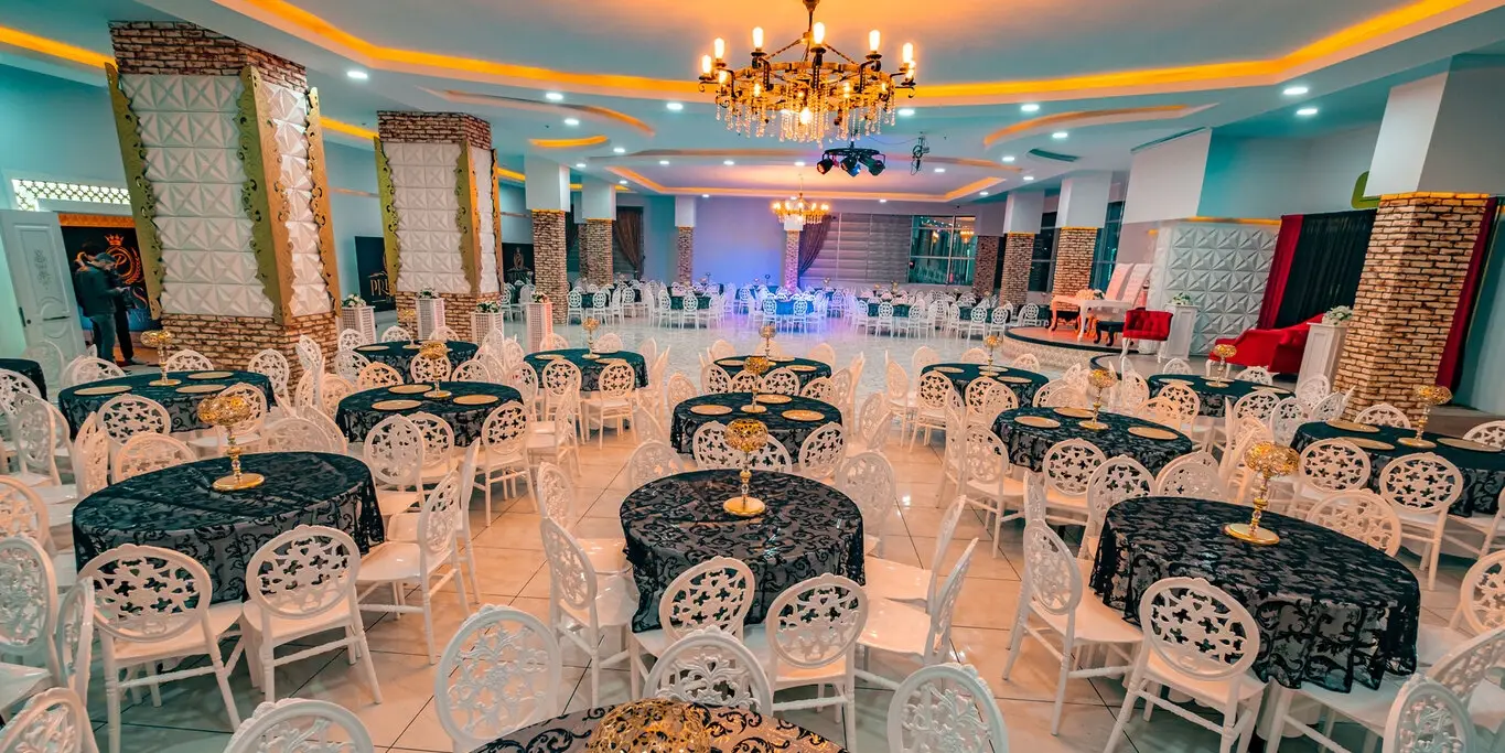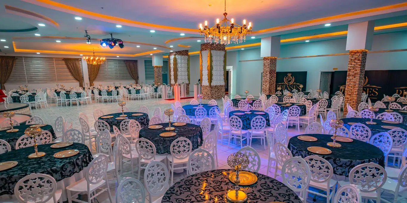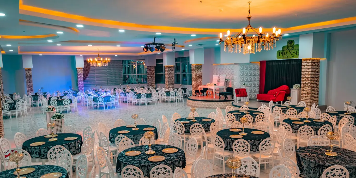Estetik ve şıklığı bir arada sunan dekorasyonumuz ile Prenses Deluxe Düğün Sarayı, Konya'nın en gözde mekanlarından biri olarak öne çıkmaktadır. Beyaz ve siyahın zarif uyumu ile süslenen masalarımız, altın renkli şamdanlar ve uyumlu aksesuarlarla göz kamaştırıcı bir atmosfer yaratmaktadır.