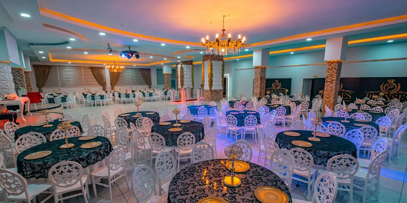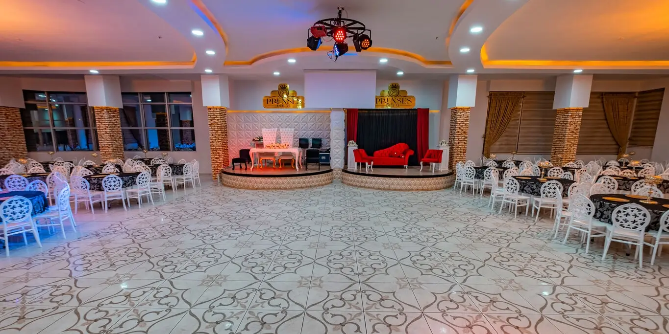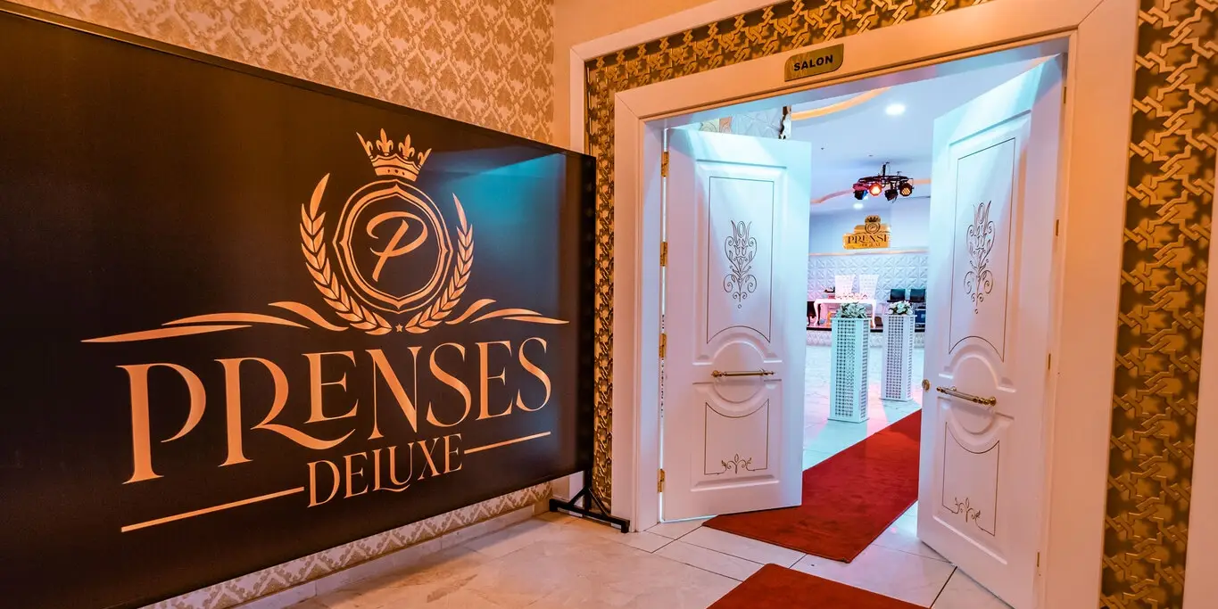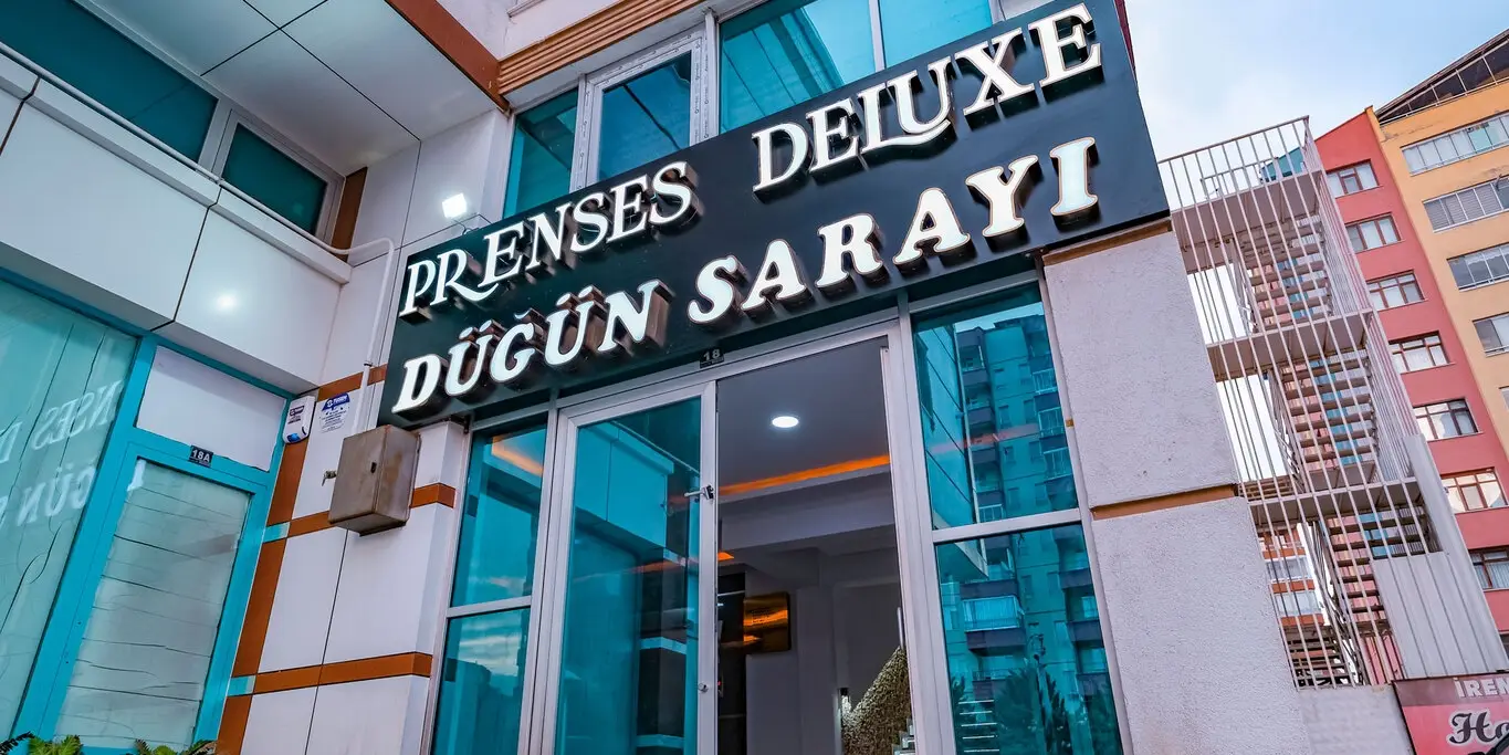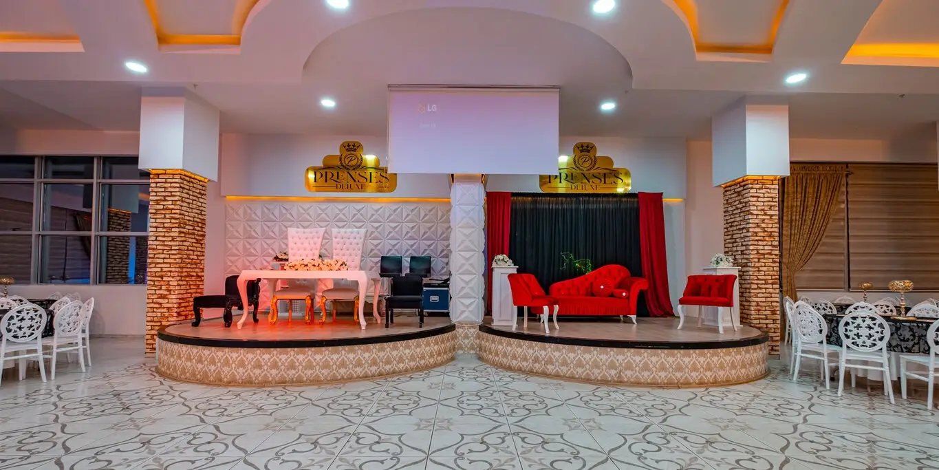 Prenses Deluxe Düğün Sarayı Düğün Salonları fiyatları hafta içi yemekli kişi başı ₺500,00 - hafta sonu yemeksiz paket fiyatı ₺20.000,00 - hafta sonu yemekli kişi başı ₺500,00