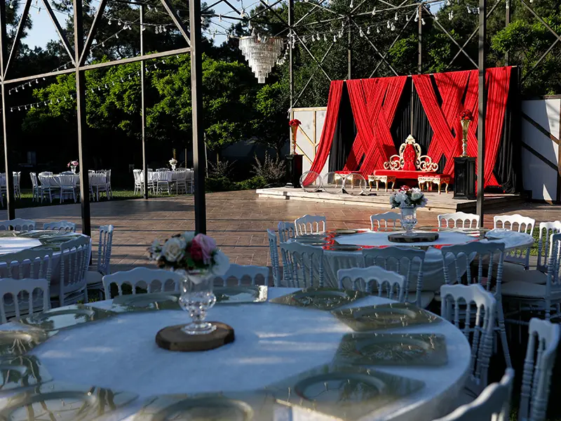 Kır düğünü davetleriniz için tercih edebileceğiniz Rosa Giardino, İstanbul ili Maltepe ilçesinde yer alıyor. Doğanın bütün enerjisini hissedebileceğiniz mekan, ağaçlarla çevrili bir alanda bulunuyor. Şıklığın ve sadeliğin bir arada bulunduğu mekanda, her adımınızda birbirinden farklı çiçeklerle karşılaşabilir ve unutulmaz karelerin de sahibi olabilirsiniz. 1000 kişiye kadar davetlilerinizi ağırlayabileceğiniz mekanın kır düğünü fiyatları ise kişi başı 900 TL’den başlıyor.