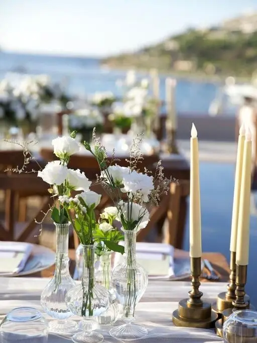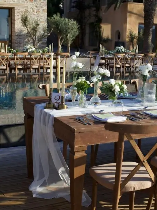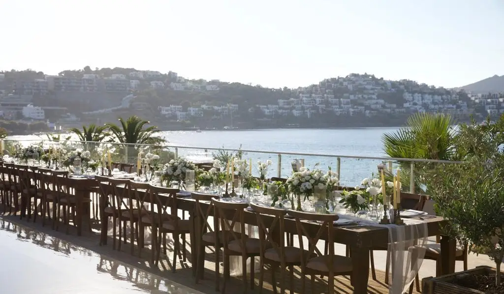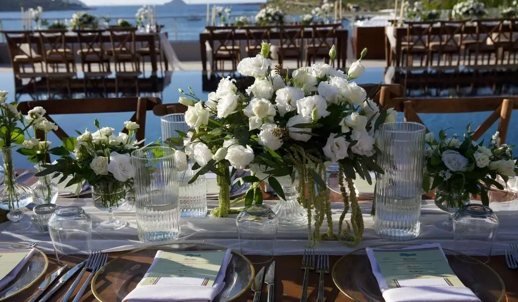 Ruins Bodrum olarak, mekan dekorasyonumuzda geleneksel Bodrum zerafetini ahşap ve beyaz renklerin hakim olduğu modern dokunuşlarla harmanlıyoruz. Davet alanımızda bulunan ahşap ve mermer şölen masaları, doğayı yansıtan soft renklerdeki masa örtüleri ve zarif dekoratif detaylarla estetiği ön planda tutuyoruz.