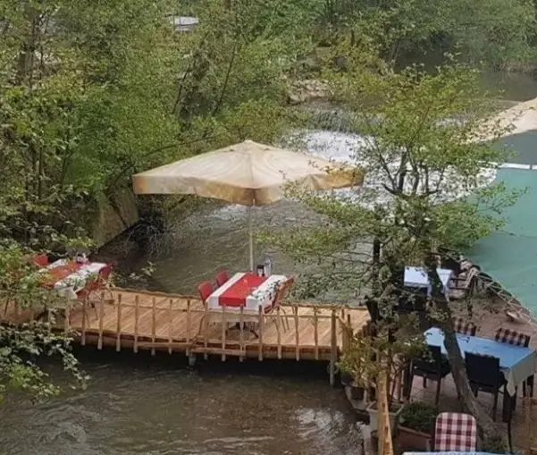 Şelale Et Mangal, bahçe, açılır kapanır tavan gibi özelliklere sahiptir ve doğa manzaralı bir atmosfer sunar.