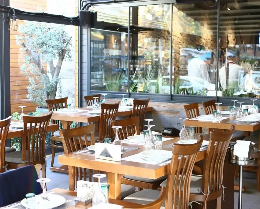 Salatalar, ege otları, çorbalar, deniz ürünlerinden oluşan ara sıcaklar ve soğuk mezeler; ana yemek olarak kuzu şiş, çöp şiş, tavuk şiş, pirzola, biftek, külbastı, kaburga, sebzeli acılı kebap, patlıcanlı kebap, karışık et, beyti; tatlı olarak baklava, tel kadayıf, ekmek kadayıfı, kaymaklı ayva tatlıları sunulmaktadır.