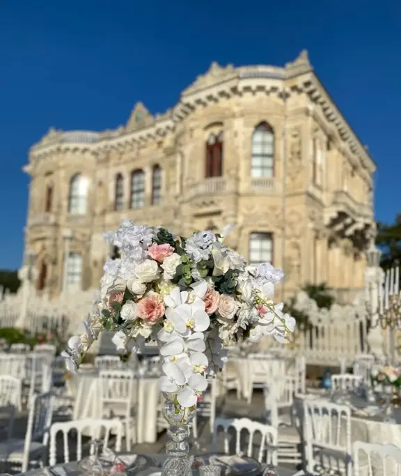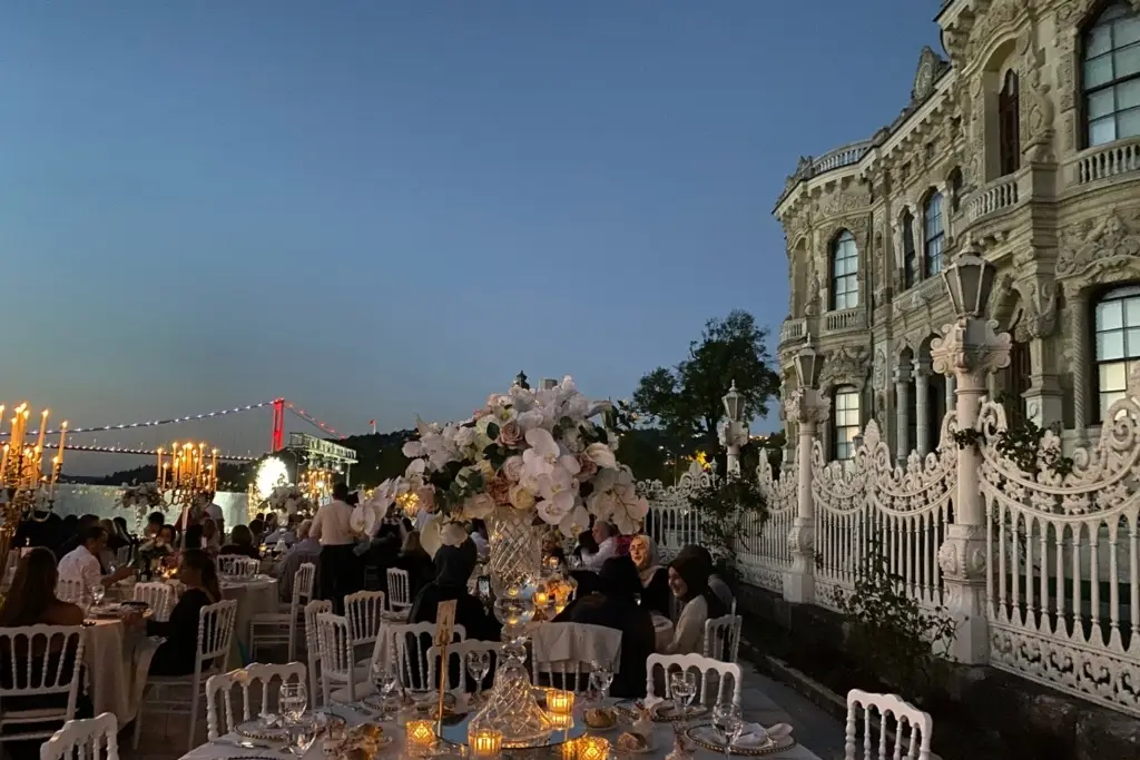 Her bir köşesi ayrı bir hikaye anlatan Küçüksu Kasrı'nın ışıltılı bahçesinde, 1.500 kişiye kadar kokteyl veya 1.000 konuğa kadar yemekli düzenlemeyle, unutulmaz bir düğün deneyimi yaşatıyoruz. İstanbul Boğazı'nın nefes kesen manzarası eşliğinde, aşkınızı tüm misafirlerinizle paylaşın.