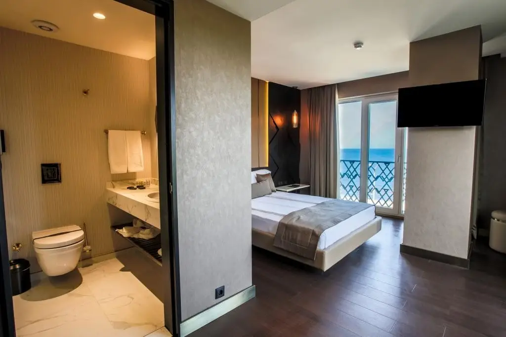 - Otel girişlerinde misafirlere ateş ölçümü. - Otel girişleri ve belirlenen bölgelere el dezenfektanı ve kolonya yerleştirilmesi. - Konaklamanız öncesi ve sonrasında odanın tamamen dezenfekte edilmesi. - Eldiven ve maskeli servis elemanı. - Özel havalandırma sistemi. - Sosyal mesafe kurallarına uygun düzen. - Masalar arasında en az 1,5 metre olacak şekilde aralık gibi önlemler bulunuyor.