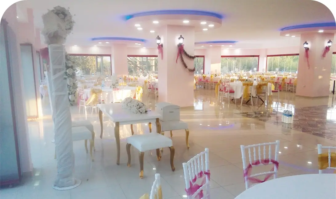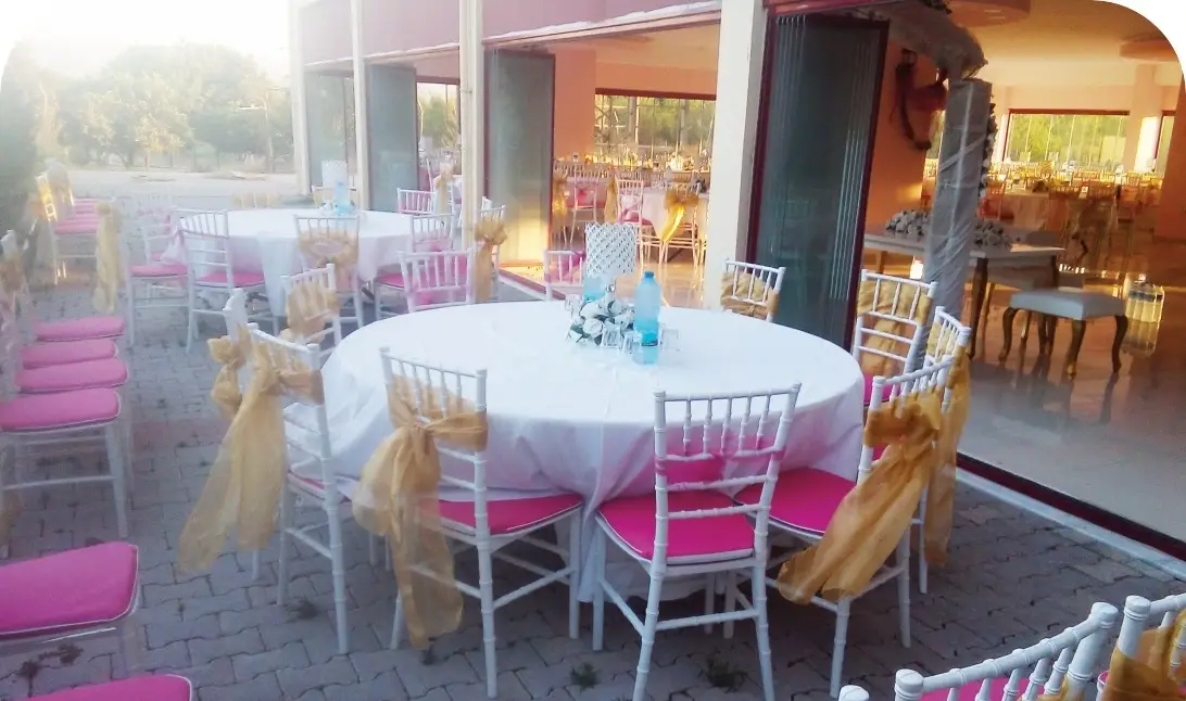 Her bir detayın incelikle düşünüldüğü Tralles Otel'de, unutulmaz bir deneyime hazır olun. Estetik ve zarafeti ön planda tutan dekorasyonumuz, her davetinize uyum sağlayacak şekilde tasarlanmıştır. Beyaz tiffany sandalyeler ve masalar, konseptinize uygun renklerle süslenerek özel gününüzü tamamlar.
