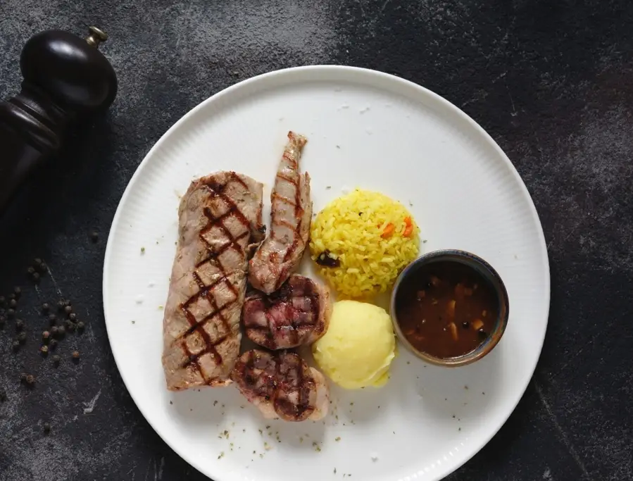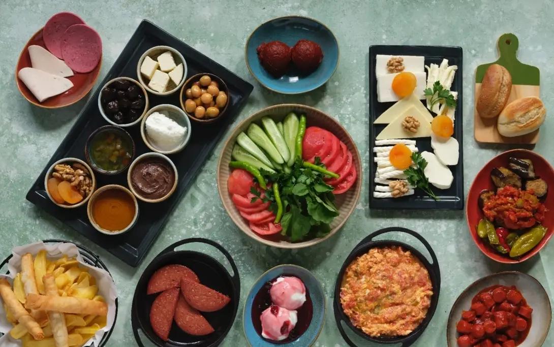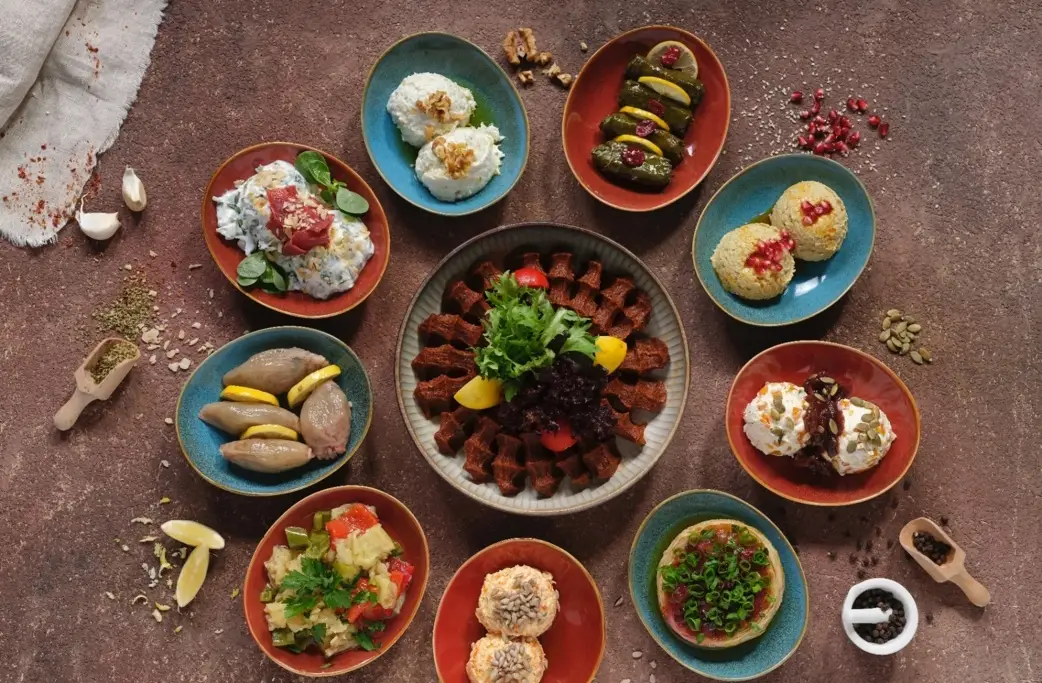 Beyaz-kırmızı et seçenekli menüler, hamburger, 25 çeşit meze, ara sıcak, içki