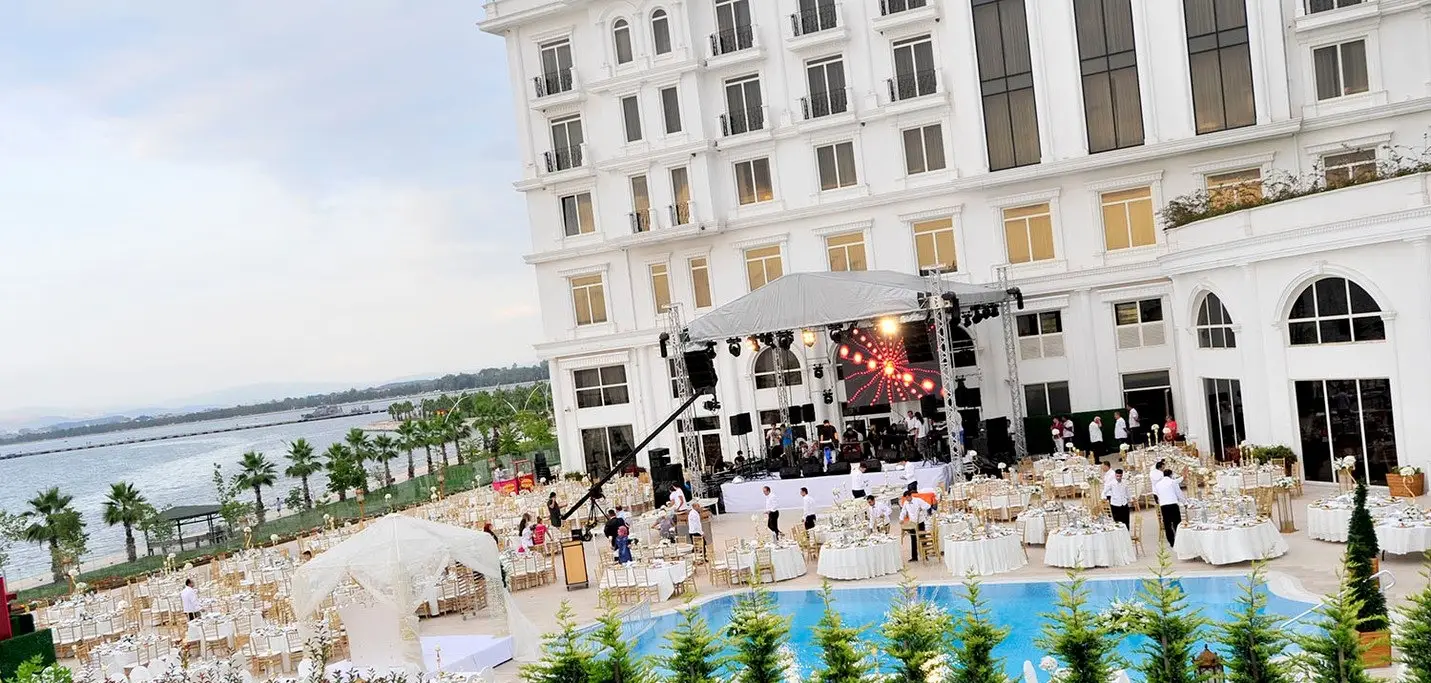 Wellborn Luxury Hotel, düğün organizasyonlarınızı ayrıcalıklı kılmak için menü tadımı, değişiklik imkanı, organizasyon sorumlusu ve after party alanı gibi çeşitli özel hizmetler sunar. Işık, ses ve sahne hizmetlerimizle etkinliğinizin kusursuz geçmesini sağlıyoruz.