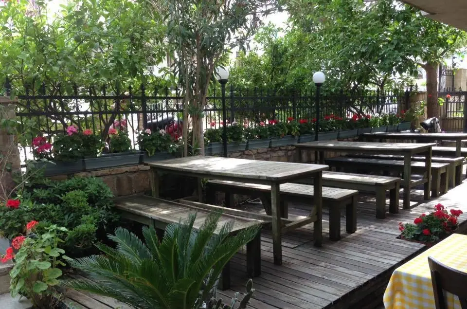 köfte, tavuk, Arnavut ciğeri ve söğüş ana yemek seçenekleri ile hibeş, ebegümeci kavurma, humus, fava ve yirminin üzerinde meze çeşidi