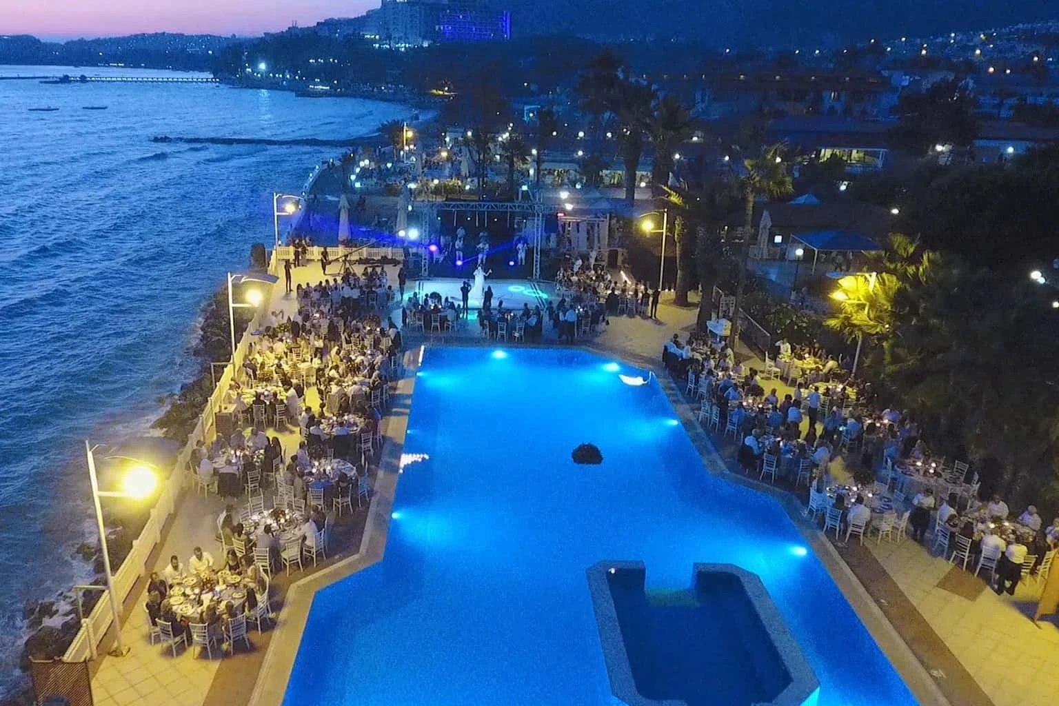 , Ege’nin serin sularına uzanan otelcilik alanında uzmanlaşmış hoş bir mekandır. Zoover gibi uluslararası prestij kazandıran ödüller hak ederek kalitesini kanıtlamış bir otel olmasıyla biliniyor. Huzur veren manzarası ve konumunun yanında size kendinizi iyi hissettirecek ekibiyle büyük takdir görüyor. Her şeyden önce kalite, kendisini tercih edenlerin beklentileri ve arzuları ön planda tutuluyor. Düğün, nişan, mezuniyet balosu, sünnet ve daha birçok kutlamayı gerçekleştirmeye uygun şık ve ferah bir salona sahip. Özellikle düğünlere ev sahipliği yapmaktan gurur duyan Fantasia Hotel De Luxe Kuşadası bu kutsal törenin mükemmelliği için her şartı sağlıyor.